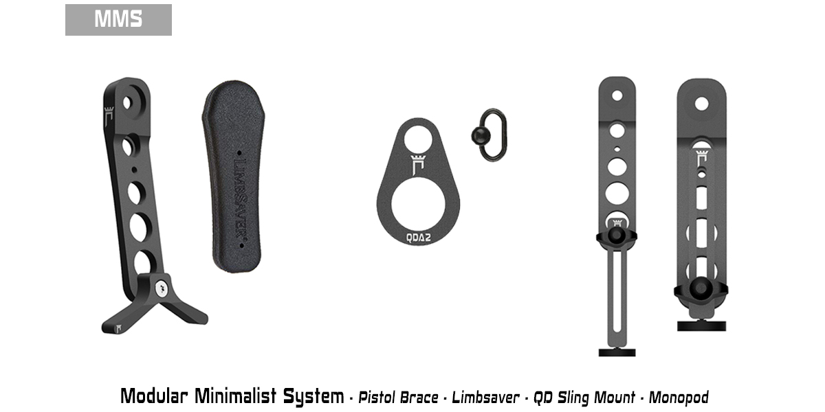 Featuring a QD sling connection and modularity with our (optinal) pistol brace, Limbsaver M4 butt pad, and monopod.