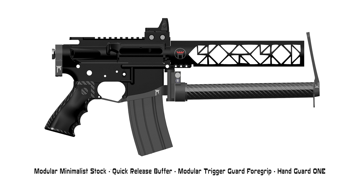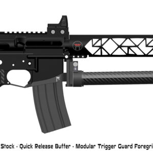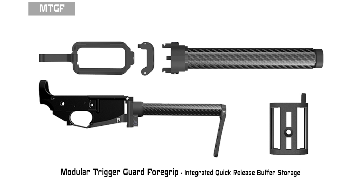 Compatible with the CASTLE enhanced modular trigger guard foregrip- a quick pinch and your buffer is off, and can be clipped into your magwell for compact storage and rapid deployment.